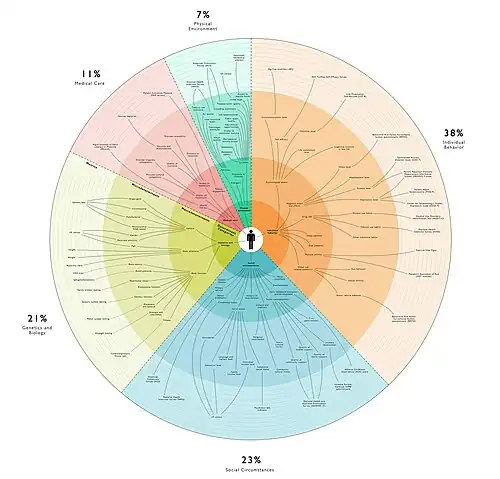 Les déterminants sociaux de la santé sont des circonstances de vie qui influencent la santé des populations et qui sont du ressort des politiques publiques, principalement[8].