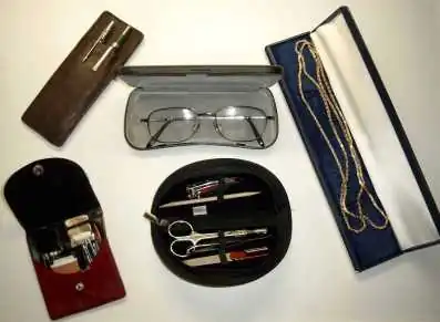 Certains objets de plus grande taille ont aussi des étuis : des armes à feu et les violons, violoncelles et contrebasses.