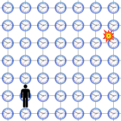 L'intervalle d'espace-temps entre deux événements A et B se calcule par la formule[1] :