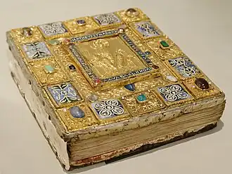 Le manuscrit, composé de 180 folios, a été rédigé par un scribe allemand du Xe ou du XIe siècle, en semi-onciale, avec les initiales et les titres en rouge. Sa remarquable reliure est faite de panneaux de bois de hêtre recouverts de plaques d'or, enrichies d'émaux cloisonnés et de gemmes taillées en cabochon. L’évangéliaire était probablement destiné à la basilique de Valère, à Sion, en Valais ; il s'y trouvait au XVIIe siècle.