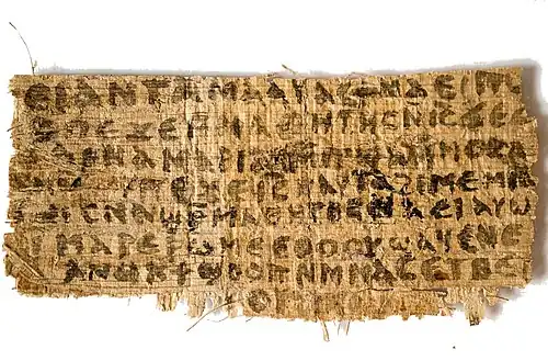 - ↑ (en) Joseph M. Azzarelli, John B. Goods & Timothy M. Swager, « Study of Two Papyrus Fragments with Fourier Transform Infrared Microspectroscopy », Harvard Theological Review, vol. 107, no 2, , p. 165 (DOI 10.1017/S0017816014000169).