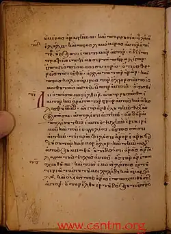 L'Évangile selon Marc est le plus bref des quatre Évangiles canoniques[2] et, à l'instar des trois autres, il est écrit dans le grec ancien dominant alors, la koinè[3].