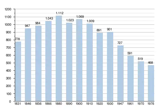- Sources: INS, Rem:1831 jusqu'en 1970=recensements, 1976= nombre d'habitants au 31 décembre