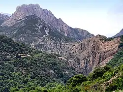 Entre les deux, se dresse un petit chaînon accroché à la Pointe de Cricche (2 053 mètres) sur la chaîne principale peu au nord-ouest du col de Vergio, puis déclinant jusqu'aux gorges de Spelunca. Ce chaînon comporte les sommets Capu a Cuculla (2 048 mètres), Capu a u Frassellu (1 517 mètres), Capu Rustici (1 331 mètres), Capu di e Querce (1 170 mètres) e Capu Rosso (641 mètres). Il sépare la commune en deux secteurs :