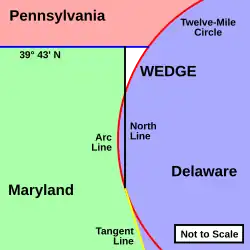 The Wedge (en), zone contestée depuis le XVIIe siècle, demeura un point litigieux entre le Delaware et la Pennsylvanie jusqu'en 1921.
