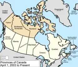 Le territoire du Nunavut est séparé des Territoires du Nord-Ouest. Le Canada prend sa configuration actuelle.