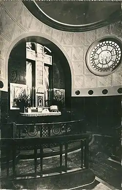 Dans la chapelle, l'autel est orné de scènes en verre coulé d'Henri Navarre (Le Christ en Croix, Marthe ou la Vie active, Marie ou la Vie contemplative).