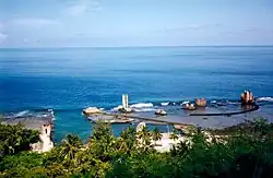 Le chargement du minerai sur les navires phosphatiers pose des problèmes techniques qui seront résolus grâce à l'amélioration des infrastructures portuaires. Makatea est ceinturée de récifs et de falaises, de plus, les fonds situés à proximité immédiate de l'île et la houle puissante rendent l'approche de l'île par des navires très ardue. L'île ne présente que deux plages permettant la construction d'infrastructures portuaires, Momu, au vent, où est situé le village polynésien originel, les premiers chargements de phosphate s'y effectuent. Mais c'est finalement la plage de Temao, sous le vent, où est édifié le port[11]. Il est constitué d'une darse creusée à l'explosif dans le platier. Au début de l'exploitation, des chalands sont utilisés, on y charge le phosphate par des paniers de grande dimension à partir de petits appontements dépassant de la zone de rouleaux de quelques mètres seulement. Ce système est lent et dangereux, il requiert l'emploi d'une main-d'œuvre nombreuse et il faut régulièrement reconstruire les appontements emportés par la mer. Les cargos où le phosphate est hissé par treuillage doivent durant l'opération de chargement mouiller sur une bouée ancrée à 400 m de profondeur et à 400 m de la côte[11]. En cas de mauvais temps, le navire doit croiser parfois pendant deux semaines avant de pouvoir reprendre les opérations. En 1927, le système est amélioré par la construction d'une jetée métallique amenant le minerai 50 mètres après les rouleaux, ce qui évite aux chalands d'avoir à les franchir, mais le chargement reste onéreux et difficile[11]. En 1953 est décidée la construction de la jetée Seibert permettant sans intervention de la batellerie de charger 500 tonnes de phosphate à l'heure. Le système achevé fin 1954 est composé d'une poutre principale terminée par une sauterelle mobile à 106 mètres du rivage permettant au minerai d'être délivré par tapis roulant jusqu'au-dessus des cales du navire amarré entre quatre grosses bouées fixées au fond d'une profondeur de 40 m à cet endroit[11]. Cette jetée, techniquement complexe en raison de la nature très accore du récif, est repliable sur elle-même après utilisation ; elle repose alors sur trois piles édifiées le long du récif[11].