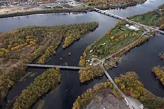 Un pont piétonnier reliant le site de Trois-Rivières-sur-Saint-Laurent et l'île Saint-Quentin est esquissé dès 2002 pour franchir le cours de la rivière Saint-Maurice et faciliter l'accès à l'île, en créant un nouveau point d'accès depuis le centre-ville pour les promeneurs désireux de s'y aventurer à la marche ou à vélo afin de profiter des lieux, de ses plages, ses installations et ses espaces verts en plein cœur de la ville. Sa mise en place n'a toutefois pas été retenue dans les plans d'urbanisme[4].