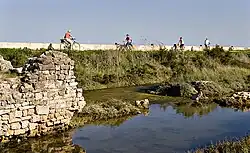 À marée basse, il est possible de voir les vestiges d’écluses à poissons, dont certaines ont été restaurées à Sainte-Marie-de-Ré.