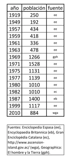 Déserte d'êtres humains lors de sa découverte par des Européens, l'île est aujourd'hui principalement habitée par des Saint-Hélénais, ainsi que des Britanniques et des Américains[16].
