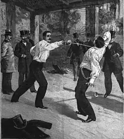 Une série d'articles dans le journal antisémite La Libre Parole soutient qu’il faut « exclure tous les Juifs de l’armée française »[4]. Se considérant insulté et désireux de sauver l’honneur des « trois cents officiers français de l’armée active qui appartiennent au culte israélite », l’un d’eux, André Crémieu-Foa, provoqua le journaliste et fondateur de La Libre Parole Édouard Drumont en duel. Mais il lui fut interdit de se battre par les autorités militaires. Un autre officier juif, le capitaine Armand Mayer, prit alors sa place face au marquis de Morès, qui le tua à l'île de la Jatte (alors île de la Grande Jatte) le [5],[6]. La mort du capitaine Armand Mayer suscita une vive émotion dans toute la France. L'avocat Edgar Demange, qui défendra plus tard le capitaine Dreyfus, obtint son acquittement. Théodore Herzl s'inspira de ce fait divers pour écrire sa pièce de théâtre Le Nouveau Ghetto[7].