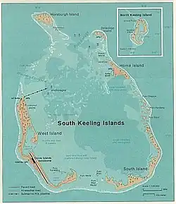 Les îles Cocos ou îles Keeling, en forme longue le territoire des îles Cocos, en anglais Cocos (Keeling) Islands et Territory of Cocos (Keeling) Islands[1], sont un archipel corallien de l’océan Indien, formé autour de deux atolls principaux. Elles constituent depuis 1984 un territoire extérieur de l’Australie.