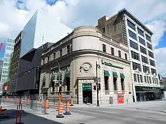 L'édifice de la Banque Dominion au 1401 rue De Bleury, un édifice bancaire de style Beaux-Arts qui est un bien du patrimoine immobilier de Montréal[4].