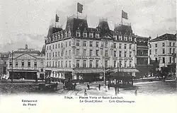 Le Grand Hôtel, côté place Saint-Lambert, et le magasin Marneffe. |