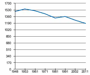- 1 2 (sr + en) « Livre 20 : Vue d'ensemble comparative de la population en 1948, 1953, 1961, 1971, 1981, 1991, 2002 et 2011, données par localités) » [PDF], pages du recensement de 2011 en Serbie - Institut de statistique de la république de Serbie, (consulté le )