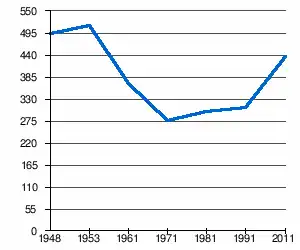 - 1 2 (sq) « Évolution de la population 1948-2011 », sur pop-stat.mashke.org (consulté le ).