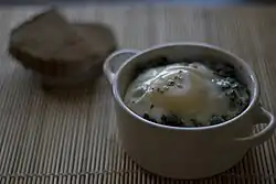Les œufs cocotte ou œufs en cocotte sont des œufs cuit au bain-marie préchauffé avec de la crème fraiche et en ramequin individuel[1].