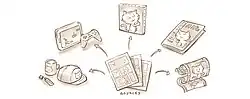 Le terme « œuvre dérivée » peut aussi se comprendre dans le sens « produit dérivé ». Il s'agit alors d'un concept marketing, visant à promouvoir une œuvre en s'appuyant sur une œuvre publiée précédemment. Voir les articles Suite d'une œuvre, Préquelle, Série dérivée, Crossover.