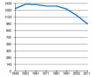 - 1 2 (sr + en) « Livre 20 : Vue d'ensemble comparative de la population en 1948, 1953, 1961, 1971, 1981, 1991, 2002 et 2011, données par localités) » [PDF], pages du recensement de 2011 en Serbie - Institut de statistique de la république de Serbie, (consulté le )