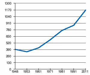 - 1 2 (sq) « Évolution de la population 1948-2011 », sur pop-stat.mashke.org (consulté le ).