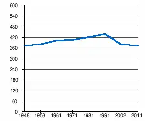 En 2002, l'âge moyen de la population était de 41,3 ans pour les hommes et 41,6 ans pour les femmes[3].
