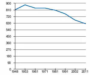 - 1 2 (sr + en) « Livre 20 : Vue d'ensemble comparative de la population en 1948, 1953, 1961, 1971, 1981, 1991, 2002 et 2011, données par localités) » [PDF], pages du recensement de 2011 en Serbie - Institut de statistique de la république de Serbie, (consulté le )