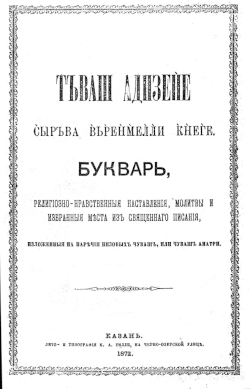 - (cv) Т́ъваш ад́изен̀е с̀ыръва в̀ьр̀ен̀м̀ел̀л̀и к̀н̀ег̀е, Казань, Лито- и типография К. А. Тилли,