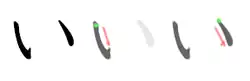 2. Tracé vertical incurvé, plus court que le premier trait.