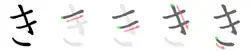 Le hiragana き s'écrit en trois traits.
