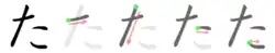 L'hiragana た s'écrit en quatre traits.
