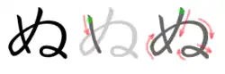 L'hiragana ぬ s'écrit en deux traits.