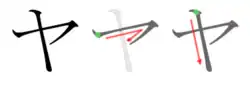 Le katakana ヤ s'écrit en deux traits.