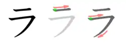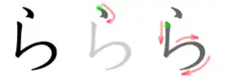 ら en hiragana ou ラ en katakana sont deux kanas, caractères japonais qui représentent la même more. Ils sont prononcés /ɺa/ et occupent la 39e place de leur syllabaire respectif, entre よ et り.