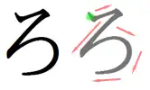 ろ en hiragana ou ロ en katakana sont deux kanas, caractères japonais qui représentent la même more. Ils sont prononcés /ɺo/ et occupent la 43e place de leur syllabaire respectif, entre れ et わ.