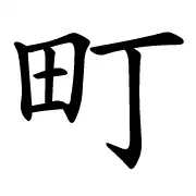町 (ville) est un kanji composé de 7 traits. Il fait partie des kyōiku kanji de 1re année.