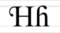 Pour des raisons techniques, la capitale est parfois représentées par Hʼ U+0048 U+02BC ou Ĥ : U+0048 U+0302.