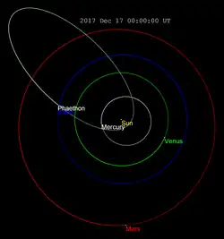 - ↑ « (3200) Phaethon: Ephemerides for December 2017 », NEODyS-2, University of Pisa Department of Mathematics (consulté le )