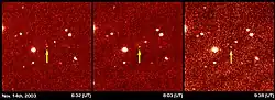 - ↑ (en) « AstDys (90377) Sedna Ephemerides 2003-11-14 », sur hamilton.dm.unipi.it, Department of Mathematics, University of Pisa, Italy (consulté le ).