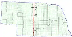 | 49° 00′ N, 100° 00′ O | Dakota du Nord Dakota du Sud — à partir de 45° 56′ N, 100° 00′ O Nebraska — à partir de 43° 00′ N, 100° 00′ O Kansas — à partir de 40° 00′ N, 100° 00′ O Oklahoma — à partir de 37° 00′ N, 100° 00′ O frontière entre le Texas et l'Oklahoma — à partir de 36° 30′ N, 100° 00′ O Texas — à partir de 34° 34′ N, 100° 00′ O | |