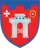 - insigne d'arme D'azur à un mur de gueule crénelé de deux pièces mouvant de la pointe et des flancs chargé d'une croix cosaque d'argent[13].
