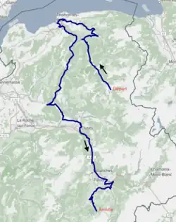 Au départ de Morzine, au cœur des Portes du Soleil, l'itinéraire prend la direction du nord, en direction de Thonon-les-Bains, par la vallée de la Dranse et la côte de Chevenoz (2,2 km à 2,9%, 4ecatégorie). Les coureurs retrouvent le Lac Léman après les deux jours passés en Suisse. Le parcours passe par la vallée verte, le col de Jambaz (6,7 km à 3,8%, 4ecatégorie) et la côte de Châtillon-sur-Cluses (4,5 km à 3,9%, 4ecatégorie). Après la descente sur Cluses, l'itinéraire remonte la vallée de l'Arve, jusqu'à Passy-Marlioz (sprint intermédiaire, km 123,8). La longue montée vers l'altiport de Megève (19,2 km à 4,1%, 2ecatégorie) s'effectue depuis Saint-Gervais-les-Bains. Une fois le centre-ville de Megève passé, il reste plus de six kilomètres jusqu'au sommet et neuf kilomètres jusqu'à l'arrivée.