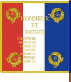 - ↑ Décision no 12350/SGA/DPMA/SHD/DAT du 14 septembre 2007 relative aux inscriptions de noms de batailles sur les drapeaux et étendards des corps de troupe de l'armée de terre, du service de santé des armées et du service des essences des armées, Bulletin officiel des armées, no 27, 9 novembre 2007