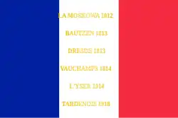 - ↑ Décision no 12350/SGA/DPMA/SHD/DAT du 14 septembre 2007 relative aux inscriptions de noms de batailles sur les drapeaux et étendards des corps de troupe de l'armée de terre, du service de santé des armées et du service des essences des armées, Bulletin officiel des armées, no 27, 9 novembre 2007