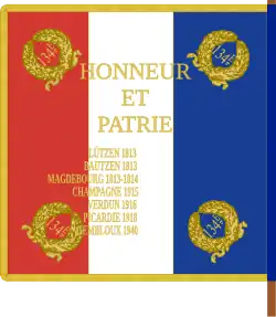 - ↑ Décision no 12350/SGA/DPMA/SHD/DAT du 14 septembre 2007 relative aux inscriptions de noms de batailles sur les drapeaux et étendards des corps de troupe de l'armée de terre, du service de santé des armées et du service des essences des armées, Bulletin officiel des armées, no 27, 9 novembre 2007