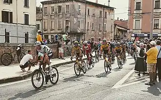 Dès le tout début de l'étape, trois coureurs passent à l'attaque et distancent rapidement le peloton jusqu'à compter une avance de 7 minutes et 30 secondes à 168 kilomètres de l'arrivée. Ces trois hommes sont les Italiens Samuele Rivi (Eolo-Kometa) et Umberto Marengo (Bardiani) ainsi que le Suisse Simon Pellaud (Androni). Sous l'impulsion des équipes des sprinteurs, cette avance décroît progressivement jusqu'à ne plus compter qu'une minute à 40 kilomètres de l'arrivée. Ensuite, le peloton joue au chat et à la souris avec les échappés en maintenant un écart réduit pendant de nombreux kilomètres mais finit toutefois par reprendre les trois fuyards à 7 kilomètres du terme. À Vérone, l'Italien Edoardo Affini (Jumbo-Visma) tente de s'extraire du peloton quelques hectomètres avant la ligne d'arrivée mais il est rattrapé et dépassé par son compatriote Giacomo Nizzolo (Qhubeka) qui franchit la ligne d'arrivée en vainqueur. Affini est deuxième et Peter Sagan (Bora-Hansgrohe) termine troisième.