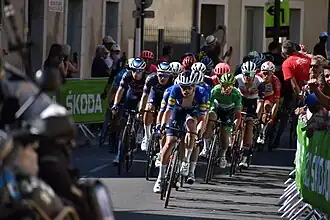 | Arrivée de l'étape 13 du Tour de France 2021 à Carcassonne (à 1 km de l'arrivée). | ||||||||||||||||||||||||||||||||||||||||