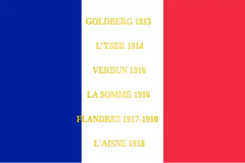 - ↑ Décision no 12350/SGA/DPMA/SHD/DAT du 14 septembre 2007 relative aux inscriptions de noms de batailles sur les drapeaux et étendards des corps de troupe de l'armée de terre, du service de santé des armées et du service des essences des armées, Bulletin officiel des armées, no 27, 9 novembre 2007