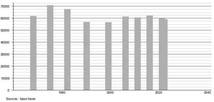 - ↑ Population municipale de référence en vigueur au 1er janvier 2025, millésimée 2022, définie dans les limites territoriales en vigueur au 1er janvier 2024, date de référence statistique : 1er janvier 2022.