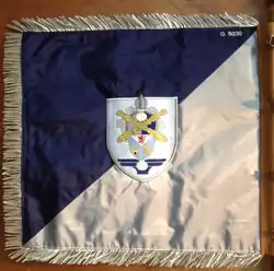 - le revers, face de l’emblème vue hampe à droite, porte en son centre une reproduction de l’insigne de la 14e BSMAT ;